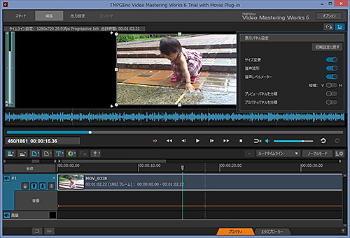 「TMPGEnc Video Mastering Works 6」のメイン画面。カット編集やフィルターの適用など自由自在