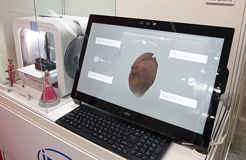 PCの前に座り、画面を数回タッチして顔を少し動かすだけで、顔面の3D画像がの取得が完了する。デモには、インテルのRealSense 3Dカメラを搭載する「FMV ESPRIMO WH77/S」が使われた