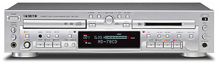 「MD-70CD」は、独立駆動するCDプレーヤーとMDレコーダーのコンビネーションレコーダー。CDプレーヤーとMDレコーダーは、それぞれ独立してCDの出力、MDの入出力ができる。また、独立駆動するコンボユニットとしてのメリットを最大限に生かし、連続再生やCDからMDへの最大4倍速ダビングなどが可能。