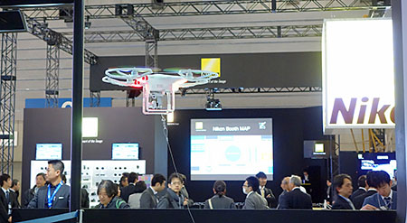 ブース内では実際にこれらの空撮用ドローンがフライトを行ない安定した飛行を見せていた。予算や用途に応じて幅広い機種が展示されており、もはや空撮が高嶺の花ではなくなりつつあること感じさせてくれる。