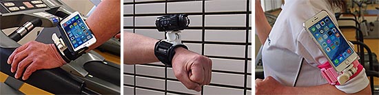 締めつけボルトで取りつけた機器の方向や角度を変えられ、しっかり固定できるので安定性が高い。ベルトにはウェットスーツ生地を採用。やわらかくて耐水性があり、しっかりと体にフィットする。両手が自由になるので、ランニングや登山、バイクなど、さまざまなシチュエーションで「ながら電話」や「ながら撮影」がやりやすくなる。