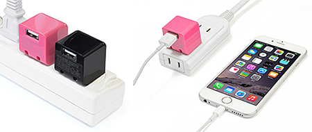 コンパクトなキューブ型のUSB充電器。スマートフォン向けUSB充電器としてクラス最小サイズで、従来製品「CUBEAC112」と比べて約30%小型化した。また、コンセントに差し込んだときに、隣のコンセントにぶつからないように設計した。