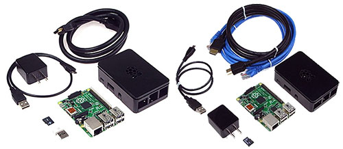 スイッチサイエンス製「Raspberry Pi スターターキット」の無線LAN版(左)と有線LAN版
