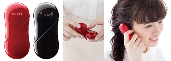 待受時にはハート型、使用時にはストレート型に変形して使用するPHS端末。液晶表示は本体に浮かび上がり、タッチセンサーで操作できる。また、スマートフォンからの電話帳の転送にも対応している。