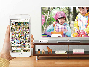 サイズは、幅154×高さ37×奥行き118mmで、従来製品「PD-100S/Wシリーズ」の約54%に小型化。テレビのまわりの小さな空きスペースにも収まる。重さは約410g。対応メディアは、SD/SDHC/SDXCカード、USBメモリ、USB接続ができる外付けHDD。デジタルカメラは、写真がJPEG、動画がmotionJPEG、mp4、H.264/AVCで撮影できる製品に対応する。