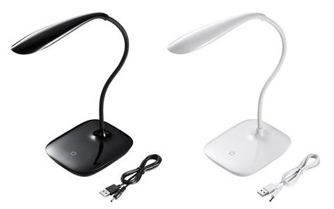 バッテリ搭載のLEDスタンド、USB接続タイプでタッチでON/OFF可能