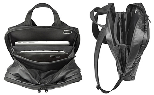 容量は18リットルとコンパクトながら、PCや書類、周辺機器を収納するスペースを確保。フロント部分にはiPodやiPhoneなどを収納できるネオプレーン製ポケットと、小物を収納することができるメッシュポケットを備える。