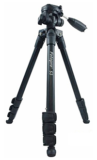 軽くて持ち運びに便利なアルミ素材を使用した三脚。カメラ/ビデオ両対応の3ウェイ雲台を搭載し、上下左右、縦・横位置の3方向への角度調整に対応する。