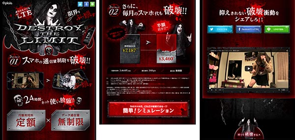 あわせて、動画と同じトーンで制作したスペシャルサイトをオープン。通信量制限やスマートフォンの代金について、「ぷららモバイルLTE」でどれだけ安くできるか(破壊できるか)解説する。