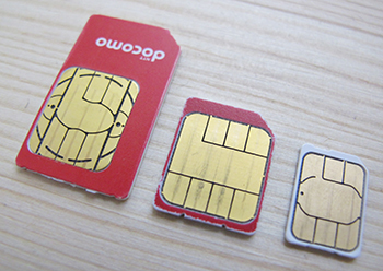 左から標準SIM、マイクロSIM、ナノSIM。