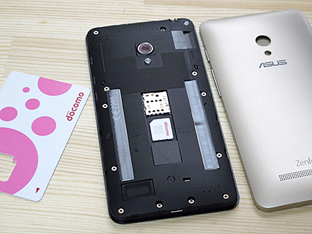 「ZenFone 5 LTE」を充電したあと、SIMカードを挿入する。SIMカードの裏表を間違えないように注意。