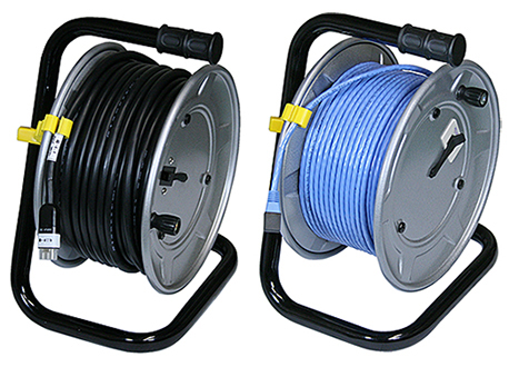 「CG-HDMI20RL」は回転ドラムタイプの巻き取り式HDMIケーブル。「CG-UTP30RL」は同じく回転ドラムタイプの巻き取り式LANケーブル。どちらも巻き取り式なので、ケーブルの長さを自由に調整でき、収納しやすい。また、持ち運びに便利な取っ手を備える。