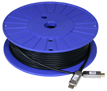 「HDMI AOC」は、HDMI信号を外部電源なしで最長150mまで延長することができるHDMIケーブル。光ファイバーを採用し、外部電磁波ノイズに強く、細径かつ軽量なので取り回しや敷設がしやすい。