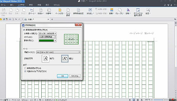 「KINGSOFT Office 2013」に新たに搭載した原稿用紙機能