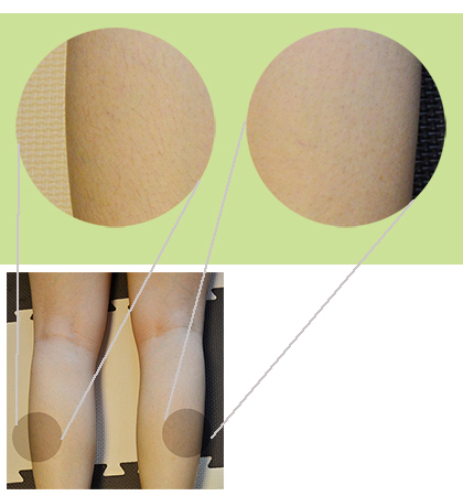 さて、最初のケアから約2週間、気になる効果を確認してみましょう。毛には「毛周期」という生え替わりのサイクルがあり、一度のケアですべての毛のアプローチすることはできません。まんべんなくケアするには、何度かに分けてフラッシュを照射する必要があります。ですが、それでも着実な効果が実感できました。