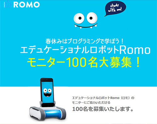 セールス・オンデマンドは、遊びながらプログラミングの仕組みを視覚的に学ぶことができる米ロモティブのエデュケーショナルロボット「Romo(ロモ)」を体験できる「Romo 100 人モニターキャンペーン」を開始した。