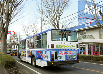コジマ×ビックカメラ所沢店の近くにある道路はバス通りでクルマの交通量が多い