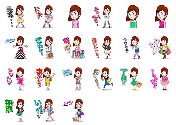 上半身だけのものと、喜ぶ・怒るなどさまざまな表情やポーズに「ごめんね」や「ワクワク」などのセリフを合成したものを一度の変換で21パターン作成。このうち3パターンは無料で保存できる。全ての画像は、Android版が108円、iOS版が100円のアプリ内課金で使用できる。なお、4月30日までの期間限定で、無料で保存できる画像を6パターンに拡大する。