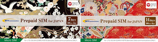 「Prepaid SIM for JAPAN 7日間」(左)と「Prepaid SIM for JAPAN 14日間」