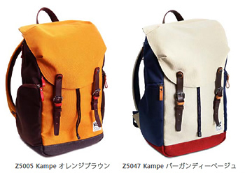 カメラバッグ「G」シリーズは、「Kampe(カムペ)」「Obia(オビア)」「Cetus(シータス)」をラインアップ。「Kampe(カムペ)」は、上下2層構造の小型バックパックで、三脚ポケット&ホルダや内蔵レインカバーなどのカメラバッグとしての機能が充実している。サイズは29×17×40cm。カラーはオレンジブラウンとバーガンディーベージュ。
