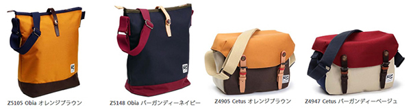 「Obia(オビア)」は、着脱可能なコンパートメント(仕切り)が付属するショルダーバッグ。タブレット収納ポケットを内蔵する。サイズは29×17×38cm。カラーはオレンジブラウンとバーガンディーネイビー。「Cetus(シータス)」は、ちょっとした外出向けのショルダーバッグ。8インチ型タブレット端末の収納にも対応する。サイズは33×13×22cm。カラーはオレンジブラウンとバーガンディーベージュ。税別価格は、「Kampe」が3万4000円、「Obia」と「Cetus」が各1万9000円。