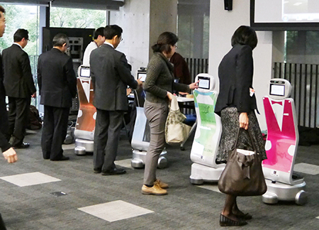 芝浦工業大学機械機能工学科の松日楽信人教授は、プラットフォームロボットとして開発した“おもてなし”ロボット「コンシェルジュ」を使ったデモンストレーションを東京都立産業技術研究センター、首都大学東京、産業技術大学院大学と連携して実施した。