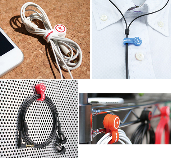シャツのブラケットに挟んで留めることで、コードのからまりや長さ調節のわずらわしさを解消できるほか、束ねたイヤホンは、スチール家具などに取り付けることも可能。カラーは、ホワイト、レッド、ブルー、グリーン、オレンジ、ブラック、ピンクの7色で各2個入り。