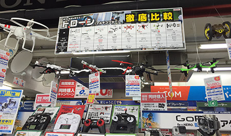 「GoPro」や「アクションカム」など、通常のアングルとは異なる視点で撮影ができるアクションカメラの市場が盛り上がるなかで、新たなトレンドとして浮上しているのが、手軽に空撮ができる「ドローン」。すでに家電量販店では、特設コーナーができるほどで、カメラファンからラジコンファンまで幅広いユーザーの注目を集めている。