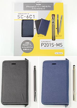 Su-Pen MSモデルとのセットも用意。iPhone 6ケース(ブラック)と「Su-Pen P201S-MSBN」(ブラックニッケル)のセット「SS-6C1BKBN」、iPhone 6ケース(ディープブルー)と「Su-Pen P201S-MSWG」(ホワイトゴールド)のセットから選べる。税別価格は5000円。