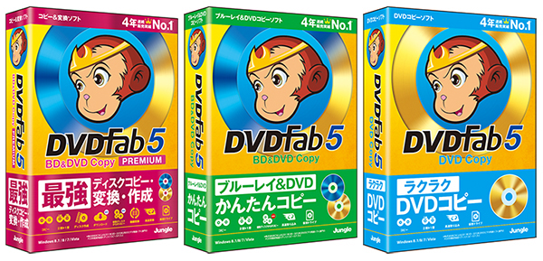 ジャングルは、BD(ブルーレイディスク)とDVDの両方に対応したディスクトランスコード対応コピーツール「DVDFab」の最新版「DVDFab5」シリーズのダウンロード版とBOXパッケージ版を4月17日に発売する。
