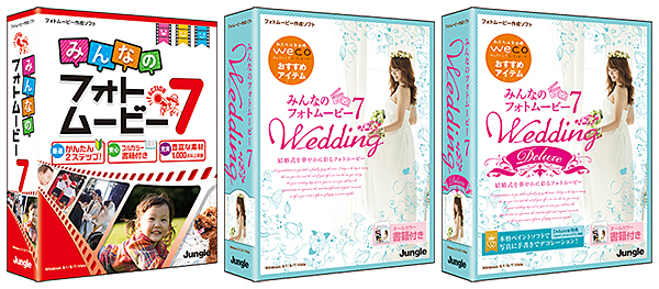 税別価格は、「みんなのフォトムービー7」ダウンロード版が6800円、BOXパッケージ版が7800円、「みんなのフォトムービー7 Wedding」ダウンロード版が8800円、BOXパッケージ版が9800円、「みんなのフォトムービー7 Wedding Deluxe」ダウンロード版が1万1000円、BOXパッケージ版が1万2800円。