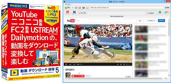 デネットは、YouTube、ニコニコ動画、Dailymotion、USTREAM(アーカイブのみ)、FC2動画の動画や音楽を、PCにダウンロードして保存できるソフト「動画 ダウンロード 保存5」を発売した。税別価格は3990円。