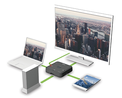 ミヨシ、4K映像出力やMHL入力対応の高機能HDMI切替器、コンパクトな手のひらサイズ