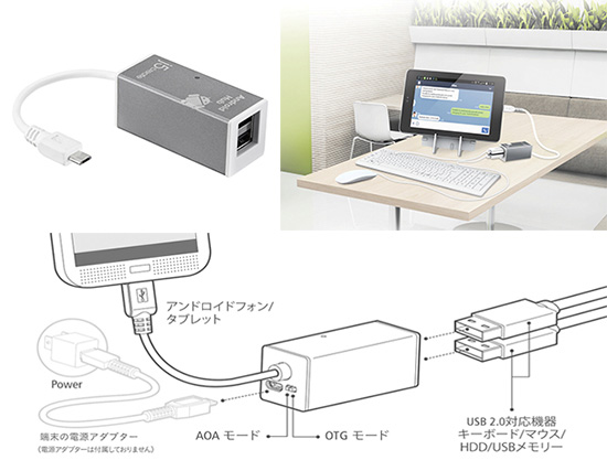 加賀ハイテック、Android端末をPC感覚で使えるマウス/キーボードハブなど