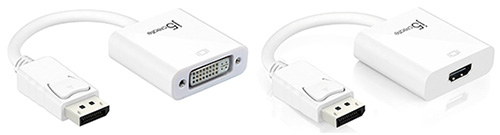 左から、ディスプレイポート(オス)をDVI(メス)端子に変換する「JDA134」、HDMI(メス)端子に変換する「JDA154」