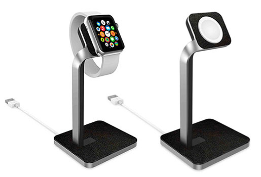 Apple Watchと接触する部分とスタンドの台座部分には、シボ加工を施したプレミアムレザーを敷くことで、高級感を演出、Apple Watch本体や、バンドのバックルにキズがつくのを防ぐ。また、Apple Watchをデスクやベッドサイドで充電しながら、時間や通知を確認しやすい適切な高さに設置できる。対応機種は、Apple Watch、Apple Watch Sport、Apple Watch Editionで、38mm/42mmどちらのモデルでも使える。