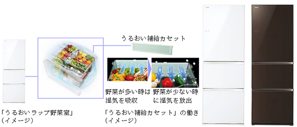 東芝ライフスタイルは、野菜の量に応じて湿度をコントロールする「うるおい補給カセット」を野菜室に新搭載した「GR-H38SXV」など、3ドア冷蔵庫の新製品3機種を5月中旬に発売する。