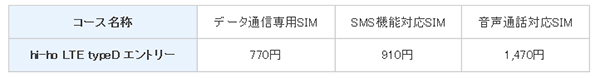 高速データ通信量が月間2GBのコース「hi-ho LTE typeD エントリー」を追加