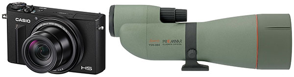 「エクシリム EX-100」(左)と付属のスポッティングスコープ「TSN-884」