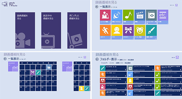 主要各社BDレコーダーとの高い互換性も持ち合わせるとともに、快適さを重視した高速表示と操作性を実現。シンプルなユーザーインターフェースを採用し、簡単に操作できる。また、曜日・カレンダー・チャンネル・ジャンル別からすぐに録画番組を見つけることが可能。