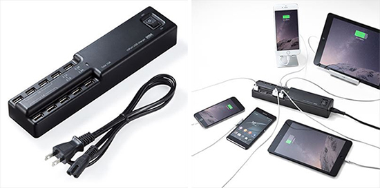 サンワサプライ、10ポートのUSB充電器、最大15Aの高出力に対応