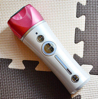 「レイボーテ」シリーズは、濃い色に反応する特殊なフラッシュを当てることで毛にダメージを与え、ムダ毛を処理する光美容器です。成長期の毛に効果があるので、2週間に1度、ケアを実施しました。