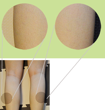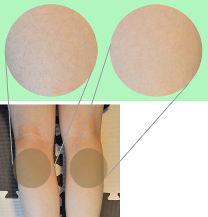 1回目の処理から1週間も経過すると、ケアをした足の毛穴が目立たなくなっていました。また、触ってみると毛がまばらになっている感覚を実感できました。