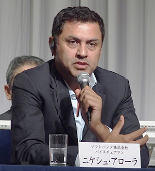 孫社長から事実上の後継者氏名を受けたニケシュ・アローラ氏