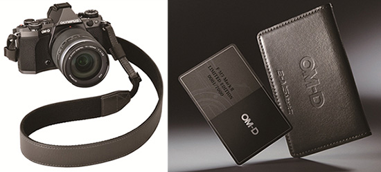 ズームレンズ「M.ZUIKO DIGITAL ED 14-150mm F4.0-5.6 II」が付属するほか、本革を使用し、本体のチタニウムカラーにフィットするよう細やかに色合いを調合した専用の「本革プレミアムストラップ」と「本革プレミアムカードケース」、限定7000台であることを証明する通し番号と「OMシリーズ」の開発者・米谷美久氏のメッセージを記載したオーナーズカードが付属する。