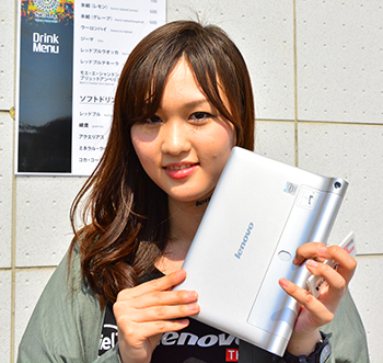このほか、ドリンクカウンターでは、専用POSアプリをインストールしたタブレット端末「YOGA TABLET 2」を使って飲み物の注文をとれるようにしていた。