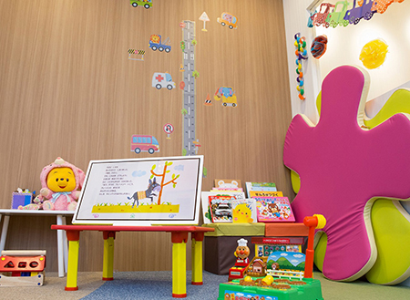 モデルルーム来場者が見学中に子どもを預けることができる「キッズスペース」。ここでは絵本コンテンツを楽しめる