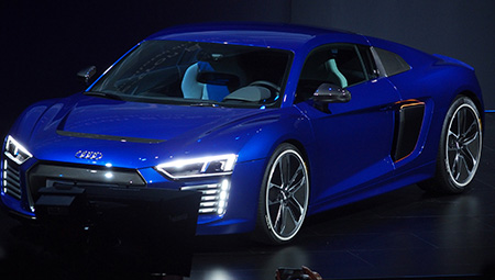 イベントでは、自動運転のコンセプトカー「R8 e-トロン」を発表した。最高時速は時速250Km、1度の充電で450Kmの走行が可能で、充電時間は2時間。バッテリー容量は90kwhと大容量で170Kw出力のモーターを2機搭載する。ビデオカメラやレーダー、レーザースキャナほか、多くのセンサーを搭載し自動運転を実現する車だ。