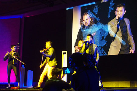 まずはエレキバイオリン、エレキギター、胡弓、ボイスパーカッションによるパフォーマンスからスタート。インテルのリアルセンステクノロジーを使った映像演出も加わり、アジア初のCES開幕を華々しく彩った。