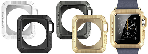 「iSHOCK」は、装着することでApple Watchを頑丈でタフなイメージに変えられるApple Watch用ケース。Apple Watchの曲面デザインを生かしつつ、Apple Watchの前面、背面、リューズ部分をしっかり保護する。また、ケースを装着したままでもApple Watchを充電できる。